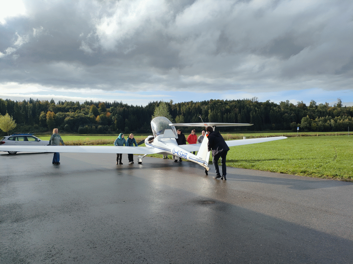 Am zweiten Tag durften wir tatsächlich fliegen. Nach einer Sicherheitsunterweisung überließ uns Janik die Aufgabe, das Flugzeug startklar zu machen und den Flugverkehr am Platz zu koordinieren. Dabei wurde uns schnell klar, wie wichtig es ist, Fragen zu stellen und dass das Fragenstellen ein Zeichen von Verantwortungsbewusstsein ist. Eine Teilnehmerin nahm genau diese Erkenntnis als wichtigste Lernerfahrung mit: dass Menschen unterschiedlich denken und offenes Nachfragen viele Missverständnisse verhindern kann. Während Janik mit jedem von uns einzeln im Motorsegelflugzeug flog, übernahmen die anderen verschiedene Rollen am Boden, vom Funkverkehr bis zum Einweisen. In der Luft reflektierten wir unsere Probleme – allein die veränderte Sicht auf die Welt von oben half manchen Teilnehmern die Probleme als gar nicht so schlimm wahrzunehmen. Eine eindrückliche Situation war die Begegnung mit einem Rettungshubschrauber, der den Flugplatz überqueren wollte. Durch klare Kommunikation im Funk konnte der Hubschrauber, trotz dessen, dass Janik mit einem Teilnehmer gerade erst in die Luft gestartet war, ohne Probleme den Platz überfliegen. Dies war direkt ein perfektes Beispiel für gute Kommunikation in der Praxis. Zudem haben wir gelernt, wie wichtig ein guter Umgang mit Fehlern ist. Denn wenn man in der Fliegerei Fehler vertuscht, kann das zu lebensgefährlichen Situationen führen. Janik führte nach dem Tag eine kurze Abschlussrunde durch, in der wir offen über unsere Eindrücke und gemachte Fehler sprachen, mit dem Ziel, daraus zu lernen. Das offene Sprechen über Fehler hinterließ bei mir einen bleibenden Eindruck.